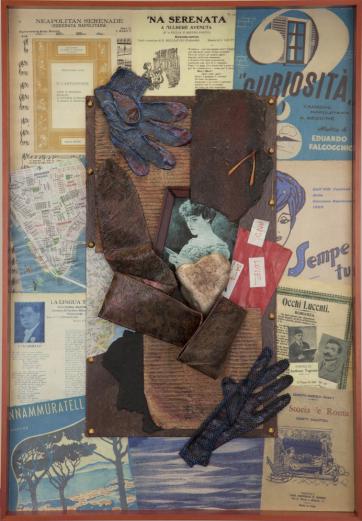 Memories of Another Time, 2011 Memorie - Sempe Tu Streetmade paper, gloves, found objects (Naples/NY) and sheet music images 22.5 x 32.5 x 2.25 in. Images courtesy of Center for Migration Studies, E.Rossi & Co., Stefania Rinaldi, Charles Sant'Elia Court